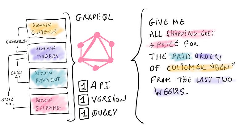 I believe this is one of the main drivers for GraphQL adoption: GraphQL schema stitching delivers incredible value to partners. Multiple teams can grow several API sections, and GraphQL will magically unify them.